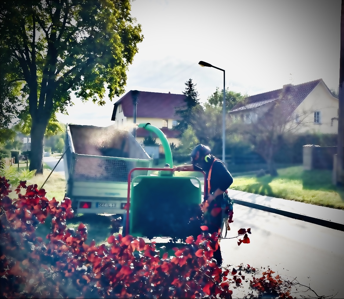 Häckseln des anfallenden Ast- und Strauchwerkes sowie fachgerechte Entsorgung.