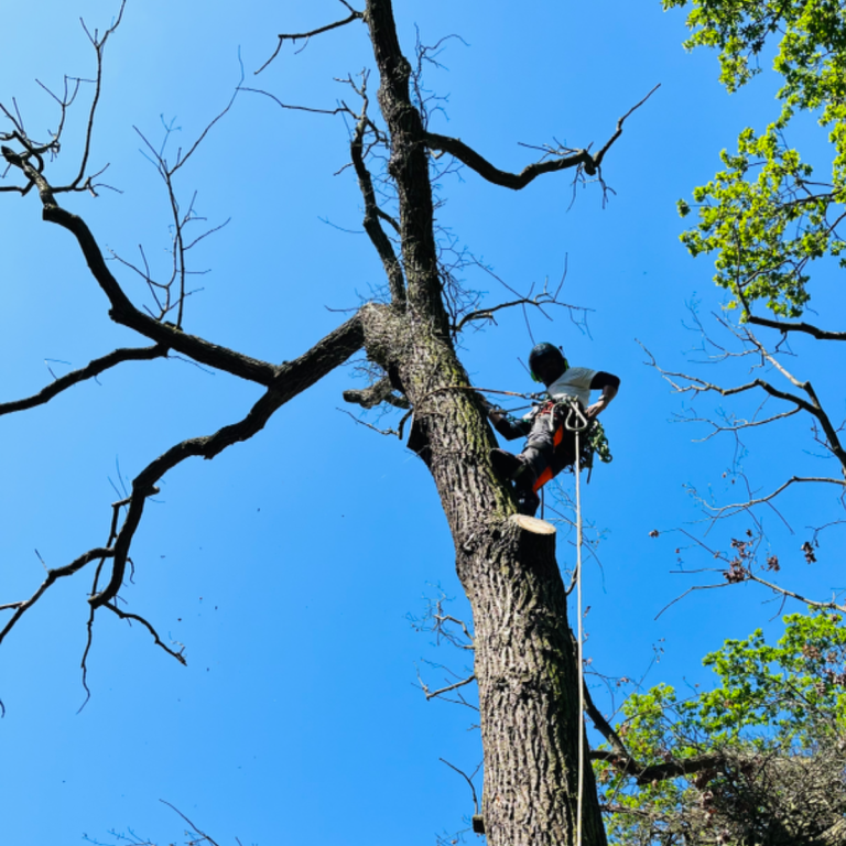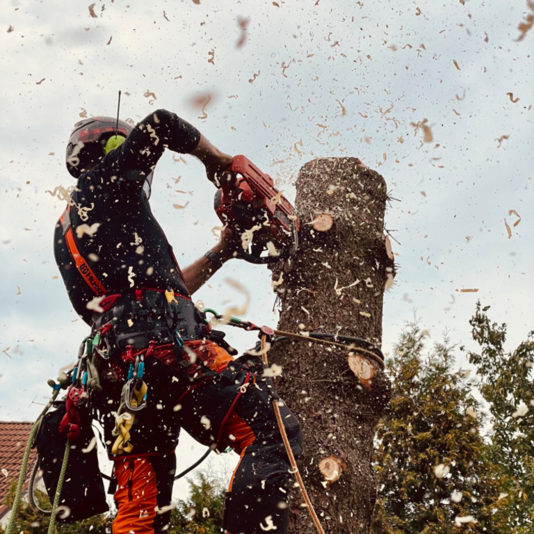 Ob kranke oder zu groß gewordene Bäume, auch in schwierigen Situationen sorge ich für eine sichere und kontrollierte Fällung mittels Seilklettertechnik oder